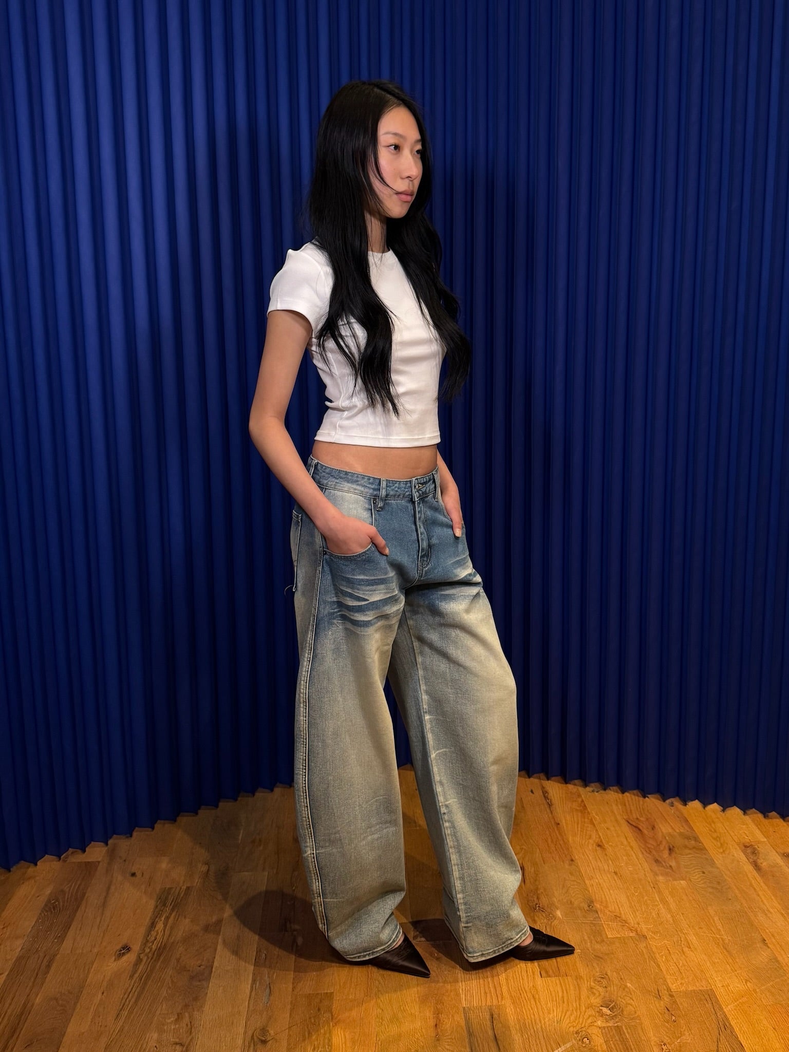 FREE MARKET ALOV CURVED WIDE JEANS
