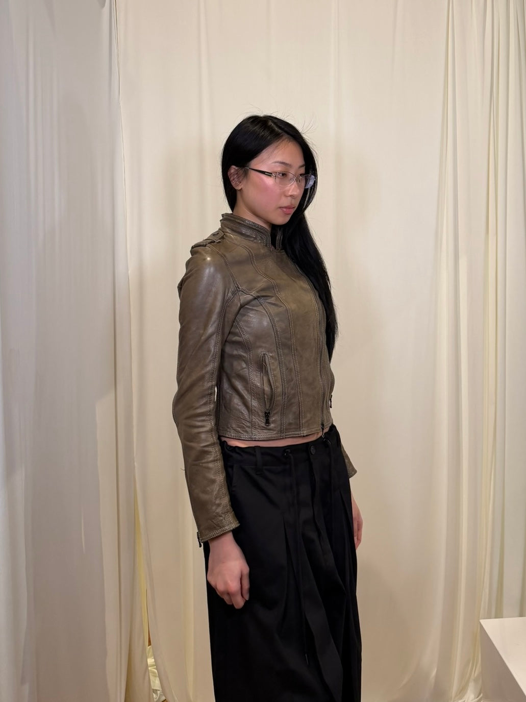 Omai Cropped Leather Jacket